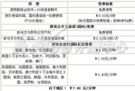 群英會(huì)計(jì)費(fèi)方式以秒為單位,撥打國(guó)內(nèi)電話為0.03元/秒。支付方式為通過(guò)網(wǎng)絡(luò)購(gòu)買充值卡進(jìn)行充值。