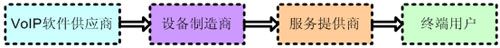 如圖2所示,VoIP產(chǎn)業(yè)價值鏈的各個環(huán)節(jié)包括軟件供應商、設(shè)備制造商、系統(tǒng)集成商、服務(wù)提供商及終端用戶。