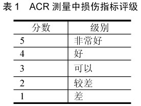 在ACR測量中,收聽者按照從1~5的5級損傷指標(biāo)對一系列音頻文件進(jìn)行分級(見表1)。