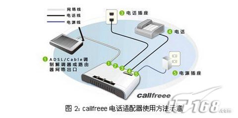 這不僅僅意味著用戶不需要高價購買設(shè)備,不需要支付任何的月租費,更重要的是用戶不需要擔心設(shè)備廠商服務(wù)質(zhì)量下降甚至中斷設(shè)備的使用。而且callfreee電話適配器配置完成以后使用方式非常簡單,用戶不需要更換電話機、變更電話號碼和和撥號方式,使用方法如下圖所示: