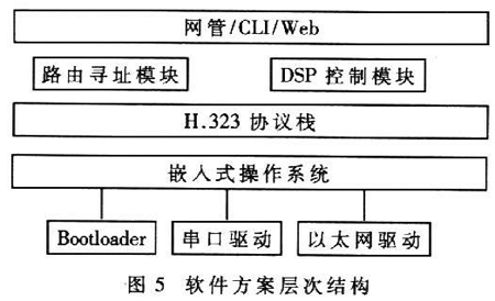 軟件部分主要由嵌入式操作系統(tǒng)和應(yīng)用層軟件組成,完成協(xié)議棧處理、路由處理和其他控制功能,軟件方案層次結(jié)構(gòu)如圖5所示。