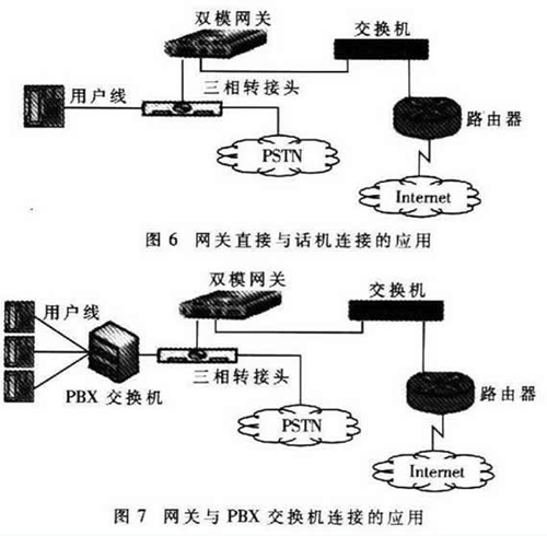 “雙!笔侵竀oIP和PSTN兩種模式。雙模網(wǎng)關(guān)是一種同時(shí)連接PSTN網(wǎng)絡(luò)和VoIP網(wǎng)絡(luò)并能在兩者之間自動(dòng)切換的用戶端網(wǎng)關(guān)設(shè)備。雙模網(wǎng)關(guān)可以使用