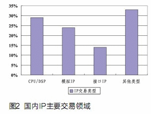 Express等);三是模擬IP(如PLL,ADC等)。這三類IP需求占到總需求的一半多。而其他的交易類型如標準的內(nèi)存模塊,以及一些面向特殊應用的IP,則占據(jù)國內(nèi)需求的三分之一(見圖2)。