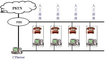 PBX毫無疑問是CTI的又一次發(fā)展,它不再是兩網(wǎng)簡(jiǎn)單的加,它徹底地去掉了一套昂貴的PBX網(wǎng)絡(luò)及兩網(wǎng)連接設(shè)備,電話網(wǎng)絡(luò)僅成為服務(wù)對(duì)象接入的一個(gè)手段,這種系統(tǒng)結(jié)構(gòu)的設(shè)計(jì)使得呼叫中心的成本至少降低了一半,同時(shí)由于開放的