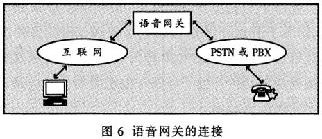 ——圖6為計算機到普通電話的通信方式。語音網(wǎng)關(guān)的一側(cè)與公眾電話網(wǎng)或用戶小交換機相連。在主叫方,它接收電話信令,將其數(shù)字化、壓縮、打包(語音包)并送到互聯(lián)網(wǎng)上;在被叫方,它從互聯(lián)網(wǎng)上接收語音包,解包、解壓并將其發(fā)送到公眾電話網(wǎng)或用戶小交換機上。