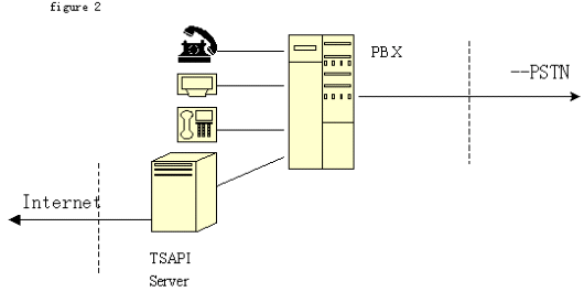2、TSAPI技術(shù)標(biāo)準(zhǔn):由Novell公司開發(fā)。它將程控交換機(jī)或中央電話系統(tǒng)與Netware網(wǎng)絡(luò)集成在一起?梢詫(shí)現(xiàn)呼叫轉(zhuǎn)移,交互式語音(IVR)和自動(dòng)呼叫分配(ACD)等功能。支持包括Windows各種版本、OS/2和Unix等目前主要操作系統(tǒng)。不同于TAPI ,TSAPI在計(jì)算機(jī)和桌面之間建立一個(gè)邏輯的連接,通過這些連接在任一端的TSAPI應(yīng)用就可以完成呼叫控制。由于TSAPI主要為Netware網(wǎng)操作系統(tǒng)增加電話服務(wù),不在每個(gè)電話和PC之間建立直接的連接,而是由一個(gè)電話服務(wù)器Netware可加載模塊(NLM)、一個(gè)電話服務(wù)器API(TSAPI)、一個(gè)電話服務(wù)器庫和一個(gè)電話客戶庫組組成在服務(wù)器電話系統(tǒng)間建立的連接,因此這個(gè)連接也稱為PBX-To-Server連接。電話服務(wù)器 NLM是負(fù)責(zé) PBX和 Netware服務(wù)器間傳送信息的。電話服務(wù)器 API是為運(yùn)行于服務(wù)器上的應(yīng)用提供電話服務(wù)器API。三方連接在客戶--服務(wù)器組網(wǎng)中比單方連接有更大的靈活性。網(wǎng)上的每個(gè)用戶都可迅速地通過現(xiàn)有的LAN基礎(chǔ)結(jié)構(gòu)撥入PBX。對(duì)其他服務(wù)的接入,如主機(jī)或終端仿真、傳真、E-mail等,都可以通過CTI接口獲得,只要這些業(yè)務(wù)已經(jīng)存在于網(wǎng)上。結(jié)構(gòu)如圖: