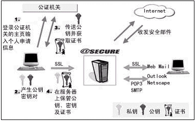 首先,用戶缺乏良好的防范意識,對E-mail安全性問題認(rèn)識不夠,所以雖然現(xiàn)在的一些客戶端軟件都采用了一些數(shù)據(jù)加密和數(shù)字簽名技術(shù),但真正使用的用戶不多。當(dāng)然,這也是由于這些技術(shù)本身操作復(fù)雜性引起的,所以,對于這個問題的解決方向應(yīng)著眼于將加密和數(shù)字認(rèn)證的任務(wù)交給服務(wù)器端。目前,如在@SECURE中采取的策略就是用戶將個人密鑰交給郵件服務(wù)器保管。