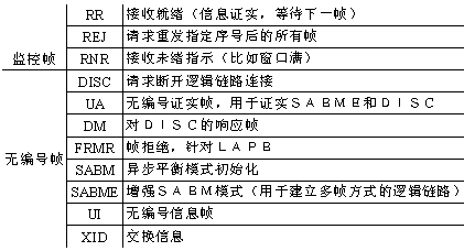 分兩類(lèi),一為監(jiān)督幀用于有序幀的證實(shí)和流控;一為無(wú)編號(hào)幀(無(wú)需證實(shí))。