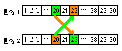 直接把要交換的Channel的對應時隙的數據拷貝到通路(或另一通路)中要交換的時隙位置即可。下圖3顯示了兩個E1支路上不同通道(Channel)間的交換情況。