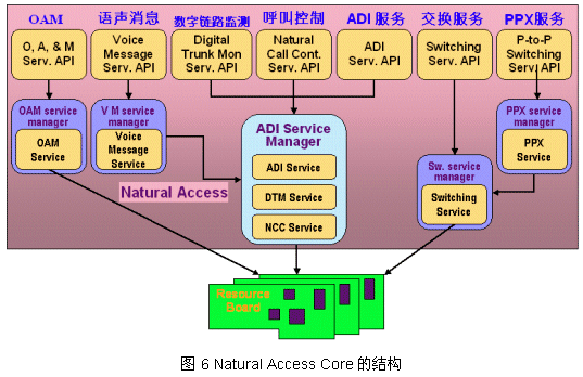 圖6顯示了Natural Access Core的組織結(jié)構(gòu)。它由四部分構(gòu)成:核心(Core)、服務(wù)(Services)、服務(wù)管理器(Service Managers)、服務(wù)守護(hù)程序(Natural Access Server:ctdaemon)。