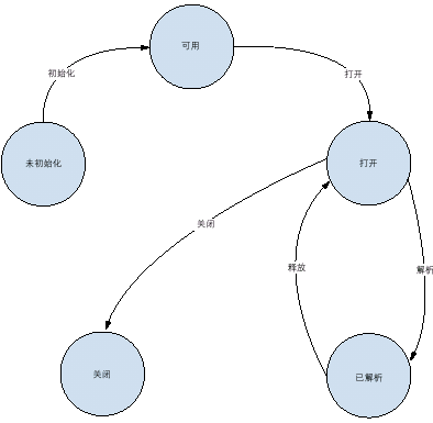 - 首先創(chuàng)建解析器對象,此時對象為未初始化狀態(tài)。經(jīng)過Xerces XML4C子系統(tǒng)的初始化,對象進入可用狀態(tài)。
