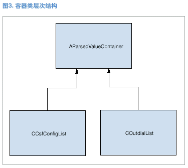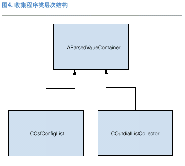 AparsedValueContainer類沒有數(shù)據(jù)和方法。它僅用于配合收集程序類的運行。(見圖3。)抽象收集程序類純虛擬功能CollectValues()的第二個影響因素是容器,當在具體收集程序類實施中定義了容器時,必須使用通用的基礎(chǔ)類。所以在真正使用容器之前,必須在每個具體的收集程序類中進行向下類型轉(zhuǎn)換。