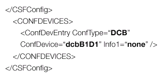 它由三個要素組成――CSFConfig、CONFDEVICES和ConfDevEntry。前兩個要素只用于為解析和數(shù)據(jù)收集過程中的每個ConfDevEntry提供環(huán)境。CONFDEVICES要素用于確定值所駐留的STL容器,容器(CONFDEVICELIST)的每個節(jié)點都包含一個對象,對象的成員變量名稱類似于XML文件中的屬性名稱――如ConfType、ConfDevice、Info1等等。成員變量的值將為屬性的值――DCB、dcbB1D1、及空值。