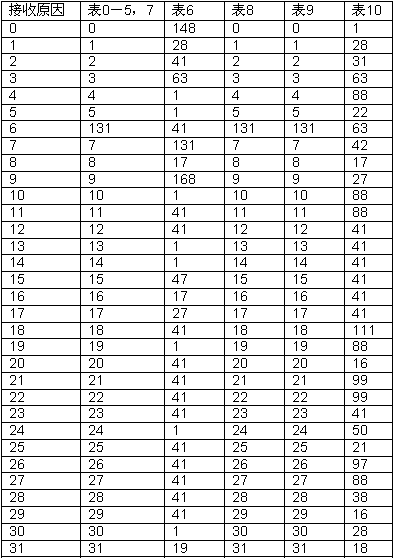 本節(jié)詳細(xì)描述了10個預(yù)配置的接受拆線原因到內(nèi)部標(biāo)識的映射表。當(dāng)前表0-5和7都是相同的。表6、8、9和10不同。