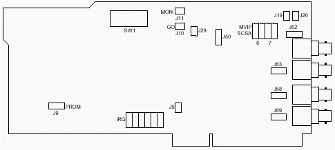 為交叉連接的數(shù)據(jù)流6和數(shù)據(jù)流7選擇數(shù)據(jù)的來源,數(shù)據(jù)可以來源于MVIP總線或者SCbus的子卡。正常的情況下,SCSA位置專用于安裝SCbus子卡,MVIP位置專用于安裝MVIP。