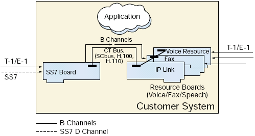 - 其它 T-1/E-1 通道被語(yǔ)音板卡管理,可通過CTbus路由到七號(hào)信令板卡