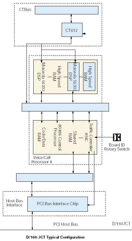 D/320-JCT板卡通過與外部網(wǎng)絡(luò)連接的CT總線接口與網(wǎng)絡(luò)接口板卡相連。DSP資源通過一個(gè)CT612模塊接收數(shù)字語音數(shù)據(jù),CT612作為到CT總線的接口。DSP基于下載到它的高速RAM中的Spring