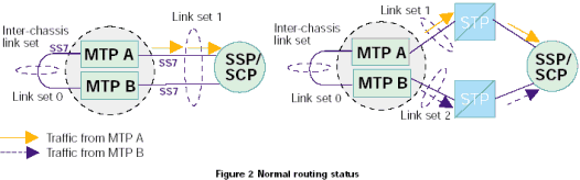 上面所列的前3個(gè)方案可以通過在兩個(gè)相鄰的節(jié)點(diǎn)之間采用多條鏈路(64或56Kbps)來實(shí)現(xiàn),最后兩個(gè)方案可以通過在兩個(gè)機(jī)箱內(nèi)采用兩個(gè)獨(dú)立但互相協(xié)作的SS7協(xié)議棧來完成。這兩個(gè)機(jī)箱在正常情況下是分開的,但可以通過互連來提供更高的抵抗故障的能力。
